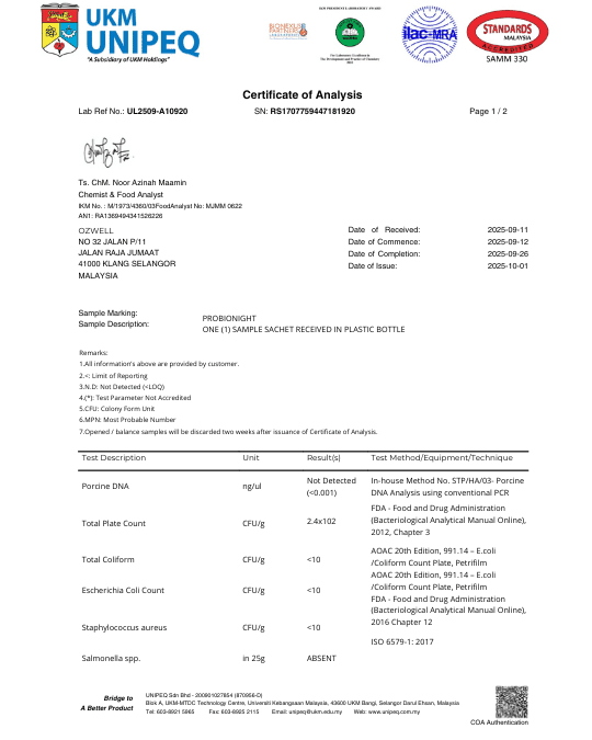 Amalkan setiap hari 1 sachet sebelum malam.